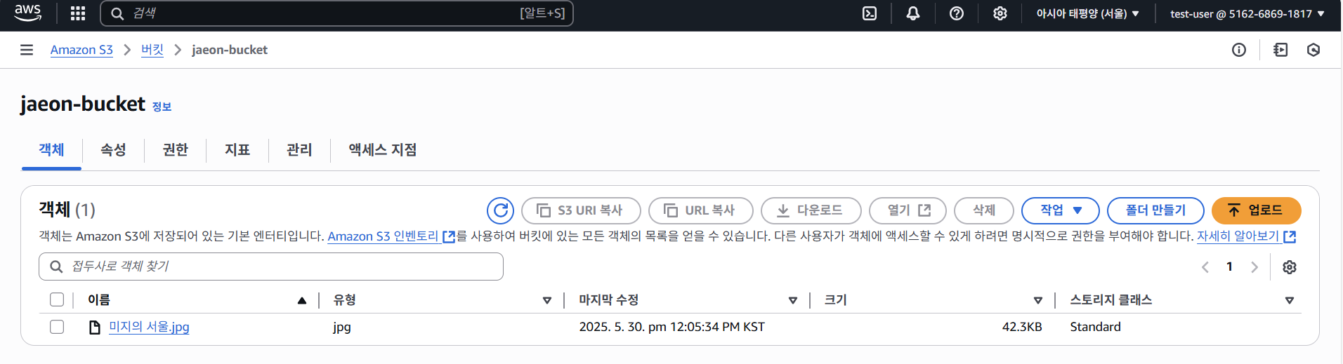 --profile을 생략하면 기본 설정된 프로필(test-user)이 사용됩니다.
