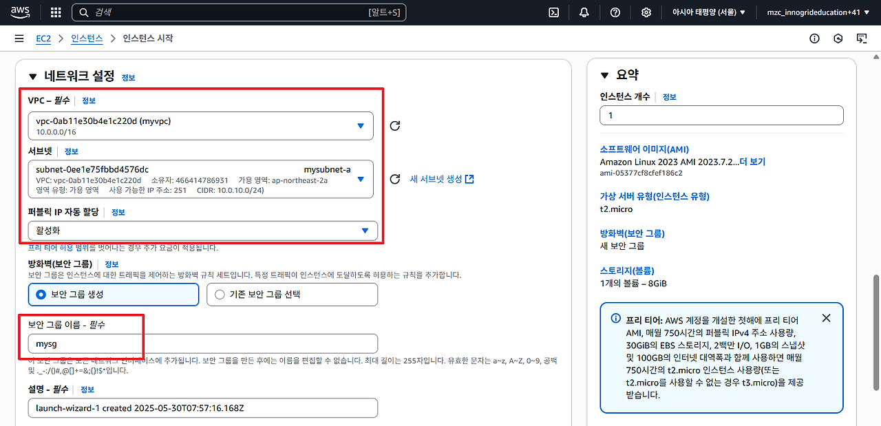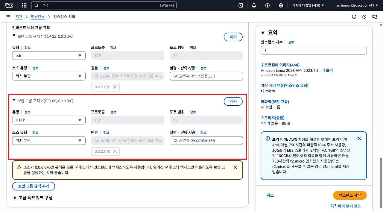 퍼블릭 서브넷에 EC2 인스턴스를 추가 (웹 서버 설치)