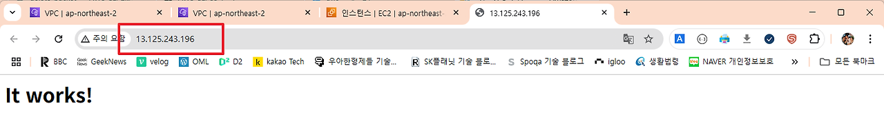 브라우저를 이용해서 인스턴스의 80 포트로 접근