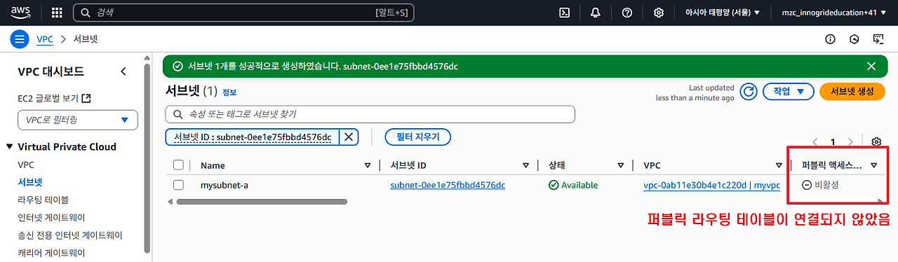 | 구분 | Public 서브넷 | Private 서브넷 |