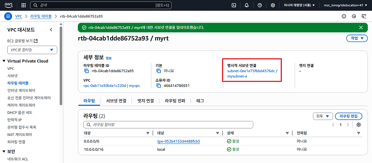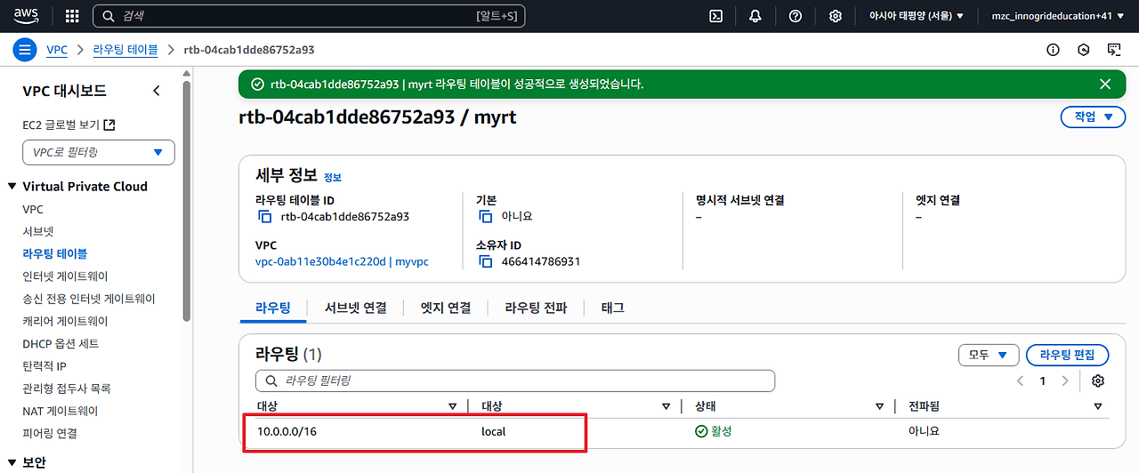 | 라우팅 테이블 | 0.0.0.0/0 → IGW |