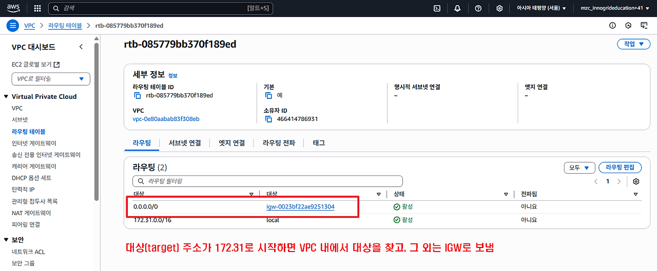 [IGW] ← 라우팅 테이블 (0.0.0.0/0 대상)