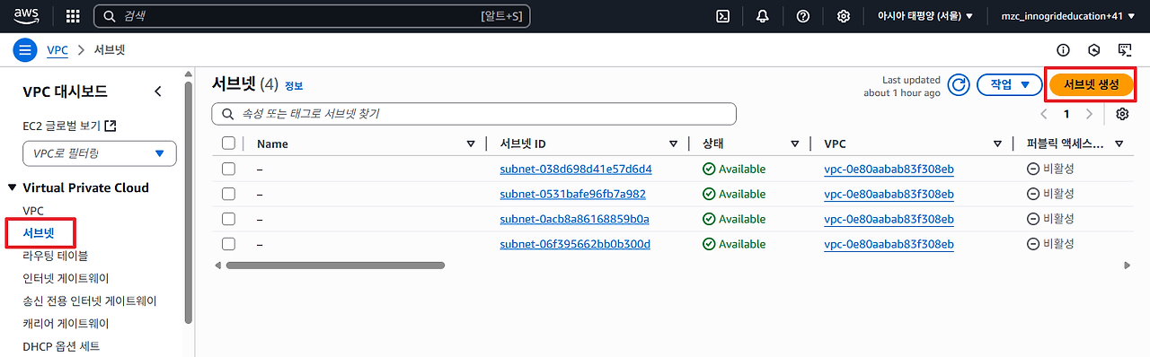 | 서브넷(Subnet) | VPC를 더 작은 네트워크 단위로 나눈 구역. 퍼블릭/프라이빗으로 구분 |