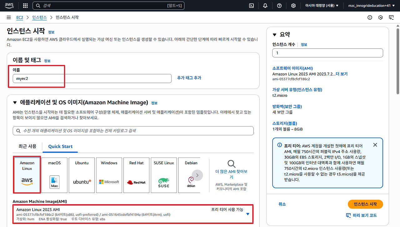 | 보안 그룹 | EC2 인스턴스에 적용되는 방화벽, 인바운드/아웃바운드 트래픽 제어 |