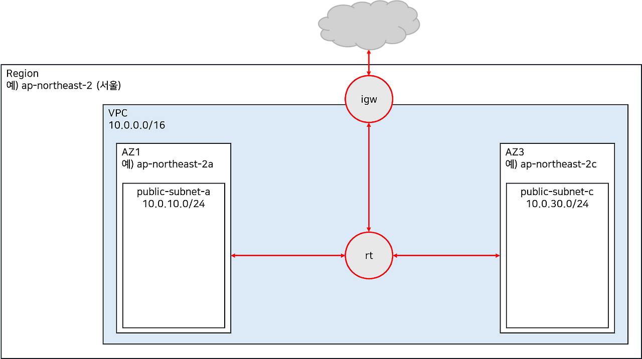 - 사용자 지정 VPC 생성 (CIDR: 예시 10.0.0.0/16)