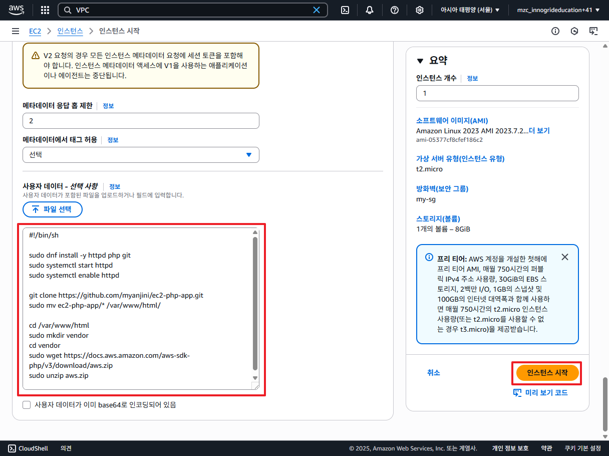 - Amazon Linux 2023 기반 EC2 인스턴스 생성