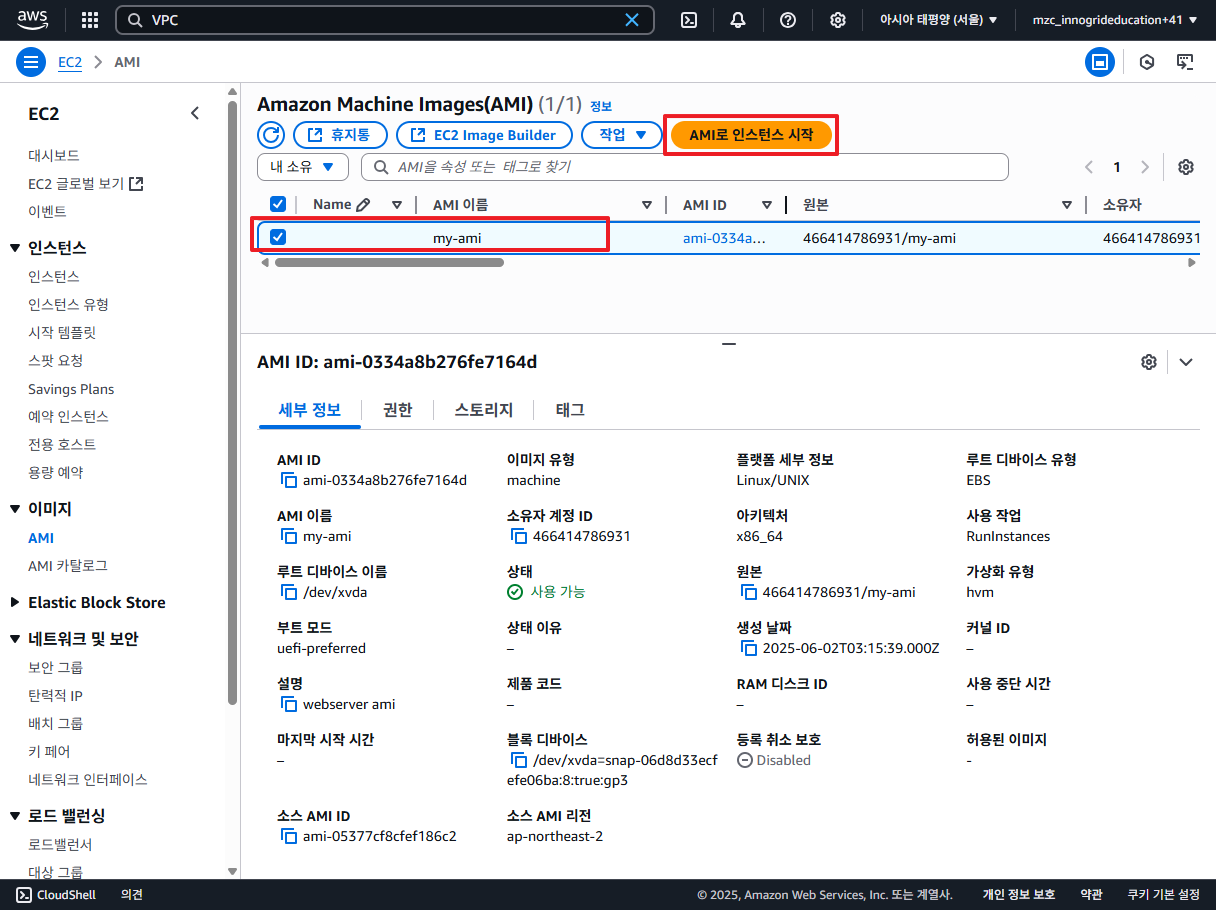 5. AMI 이미지 생성 및 복제 인스턴스 생성
