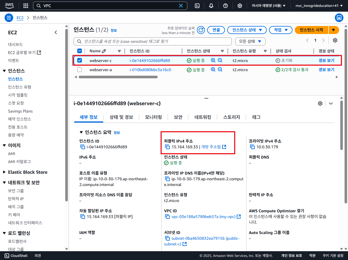 인스턴스 실행 및 퍼블릭 IP 주소 확인