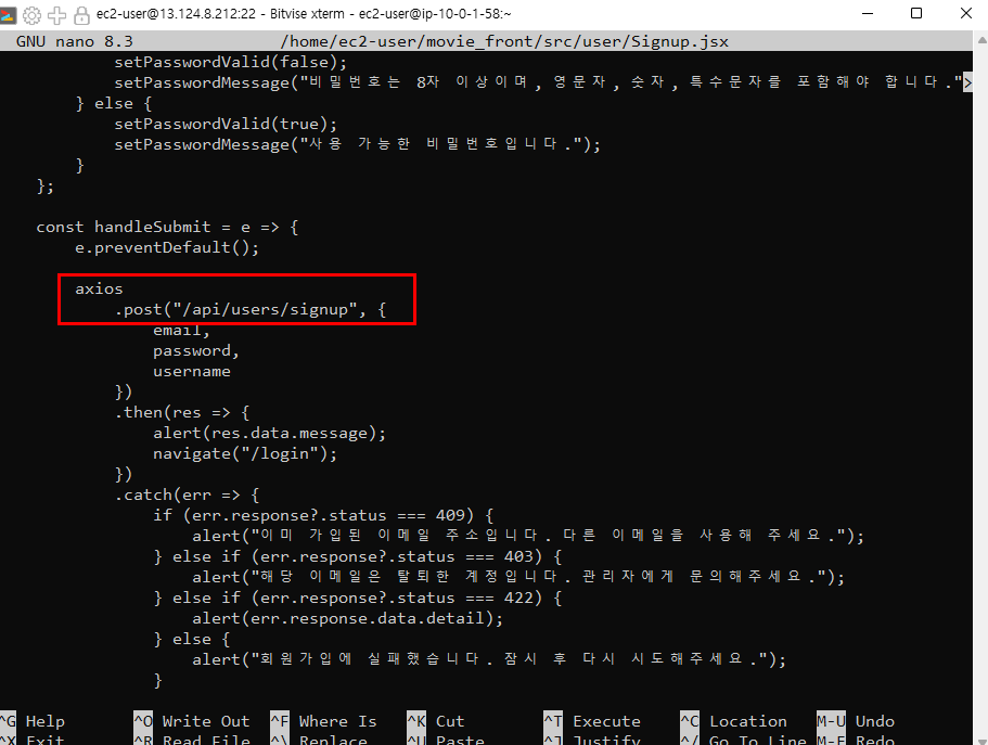 회원가입 실패: 404 에러 발생(Signup.jsx)