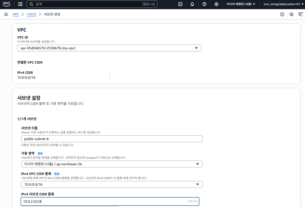 - 서브넷 이름: public-subnet-b