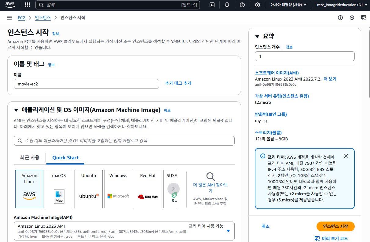 - 인스턴스 이름: movie-ec2