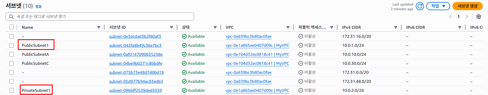 CidrBlock: 10.0.2.0/24 ← 프라이빗 서브넷 IP 범위