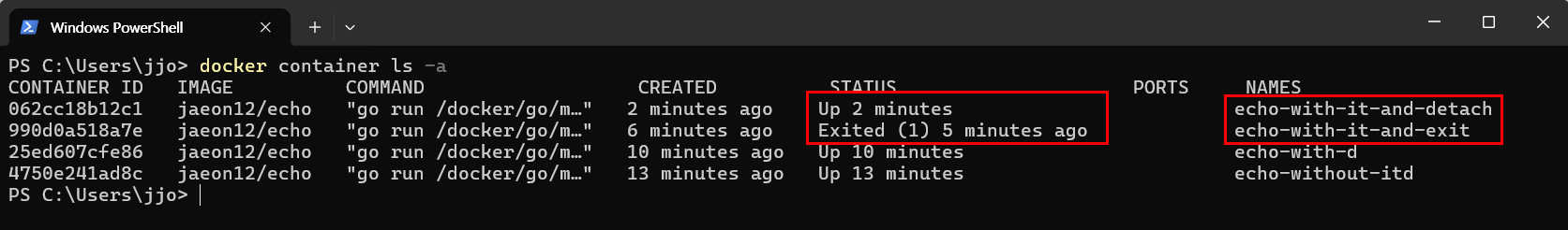 - 이미지 안에서 실행된 명령어: go run /docker/go/main.go (추정)