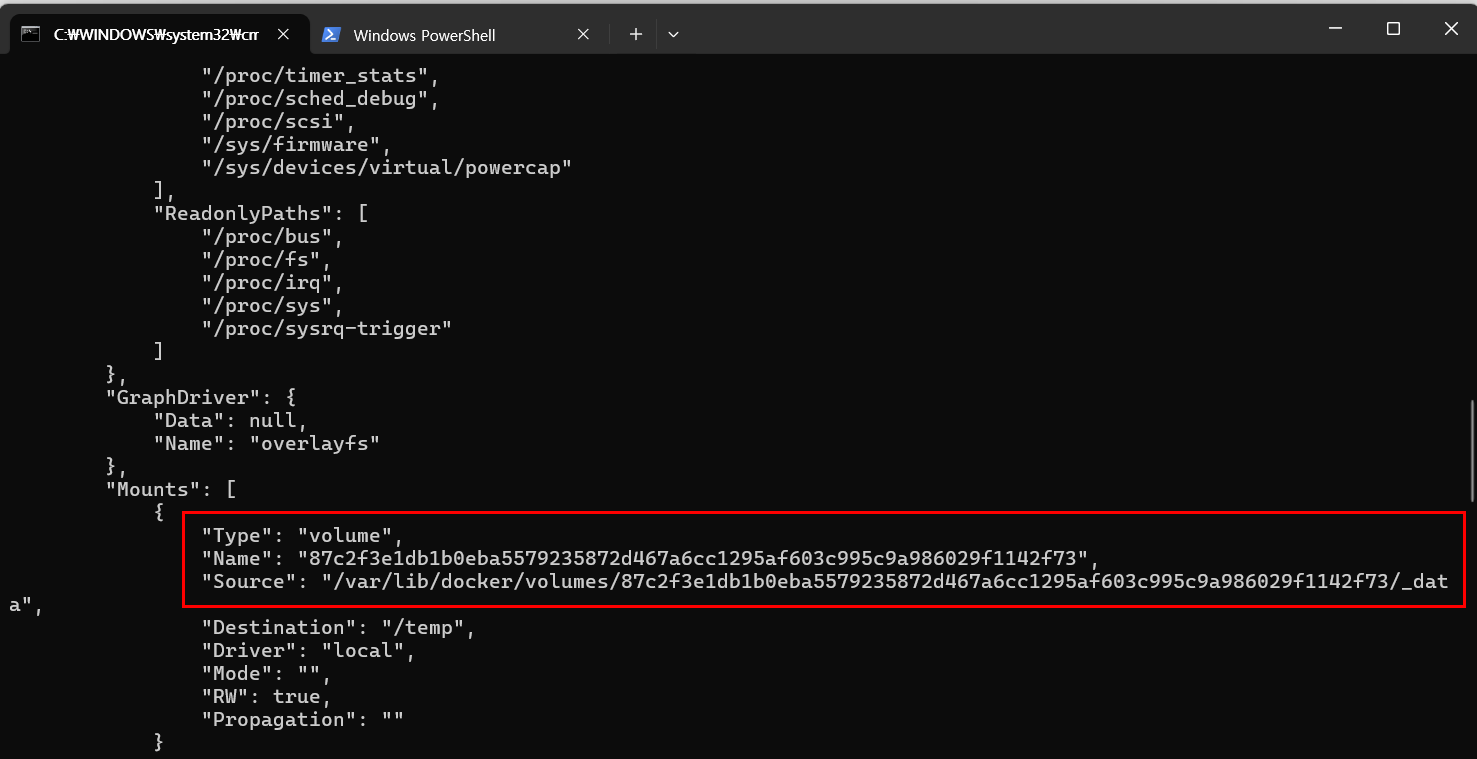 → Mounts 항목에 자동 생성된 볼륨 이름 확인 가능