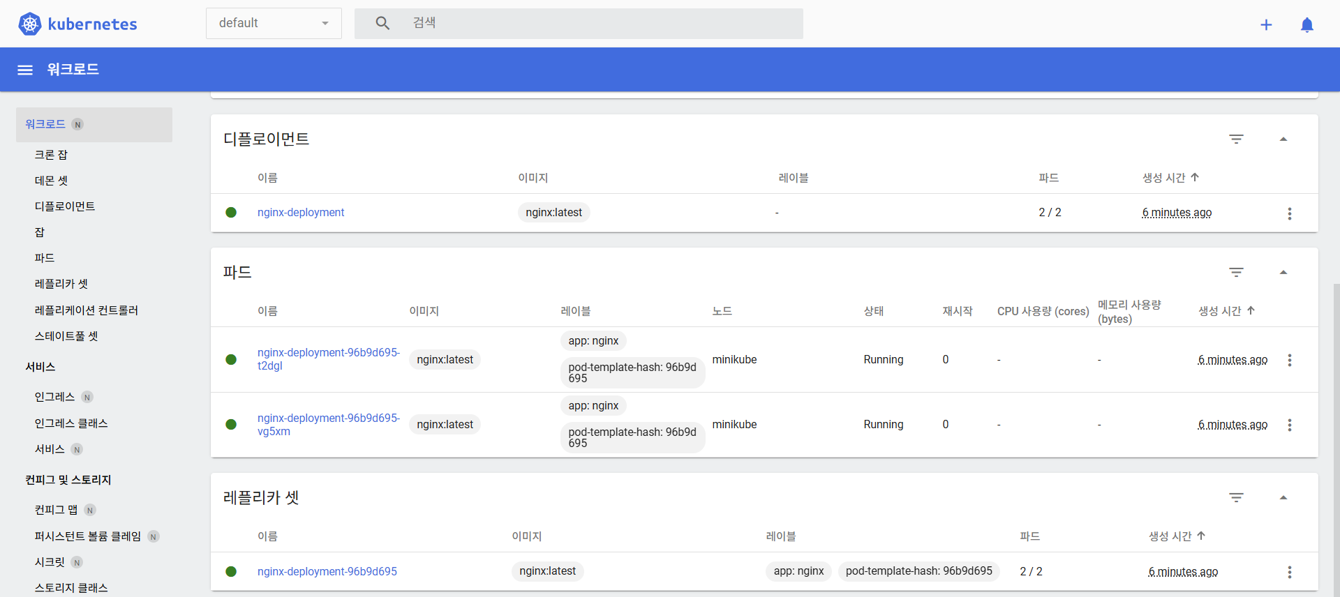 - 그 외 리소스들은 쿠버네티스가 자동으로 만들어서 관리한다.