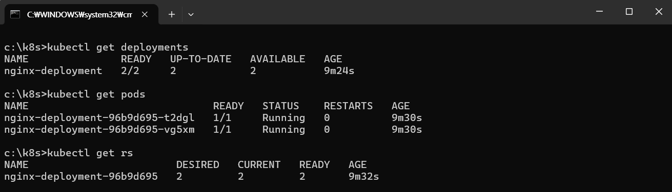 kubectl get rs