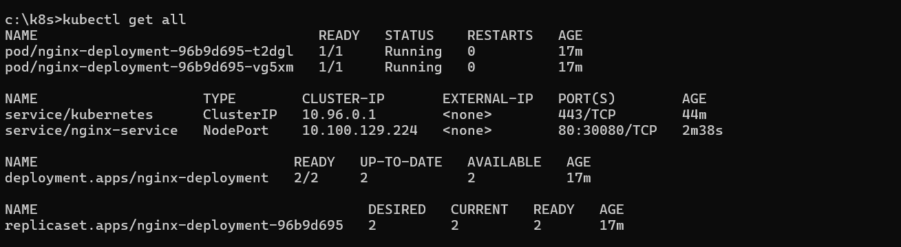 deployment.yaml에서 replicas:2를 설정했기 때문에 nginx 파드 2개가 생성