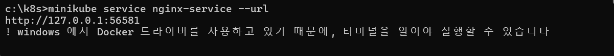 Minikube가 Docker 드라이버 사용 중일 때는 외부에서 직접 브라우저로 접속하는 것이 차단될 수 있으므로, 터널링 서버를 수동으로 열어야 함
